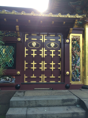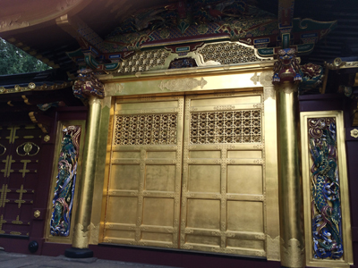 こちらの神社がお祭りしているのは、名前からも分かる通り、東照大権現。そう、日光東照宮と同じ、徳川家康公です。境内の様子も、日光と似た雰囲気。ばーんと金の扉が眩しく、周りの彫刻は日光の眠り猫と同じ、名工・左甚五郎によるものです。