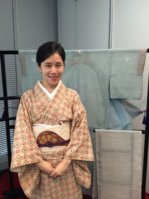 ところで、今回の写真で私と一緒に写っている裃は、小千谷縮で織られています。ものすごく薄いのがお分かり頂けるでしょうか。江戸時代より続く小千谷縮の名門“西脇商店”が所蔵するもので、江戸時代、当主が正装用に作ったものだということ。今はここまで薄い小千谷縮は織ることが出来ないのだそうです。