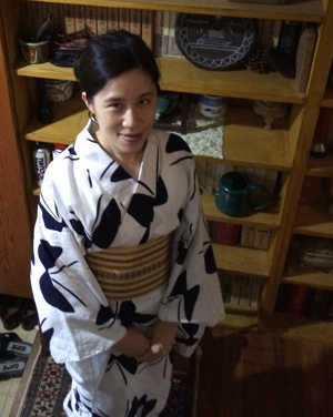 さて、楽しい催しに、浴衣での参加がOKでしたので、私は白地の浴衣で参加しました(室内では失礼になるので足袋を履いていました‥足袋ソックスでしたがw)。