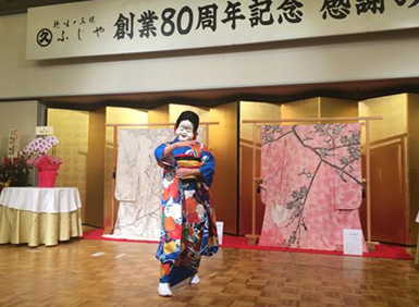 けれど80年の間に、きものを巡る環境は激変。現在、昔ながらの暖簾を守っているのは、ふじやさん一軒だけになってしまった、と、今日のスピーチの中で当主の目黒さんがおっしゃっていました(注*その代わりに、くるりさんや三松さんなど、新しい呉服屋さんも出来ています)。