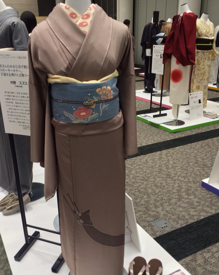 ↑こちらは、後で紹介致します今回のサローネの目玉「百人コーディネイト展」に出品されていた「杉達」のコーディネイト。型友禅の絽のお着物に、大和さんの羅の帯です。「杉達」には、友禅染め、型友禅、京絞りの職人さんが所属されています。Facebookにページがあるので見てみてくださいね。