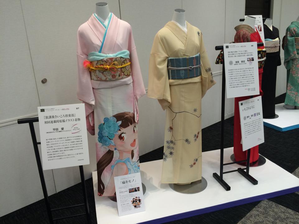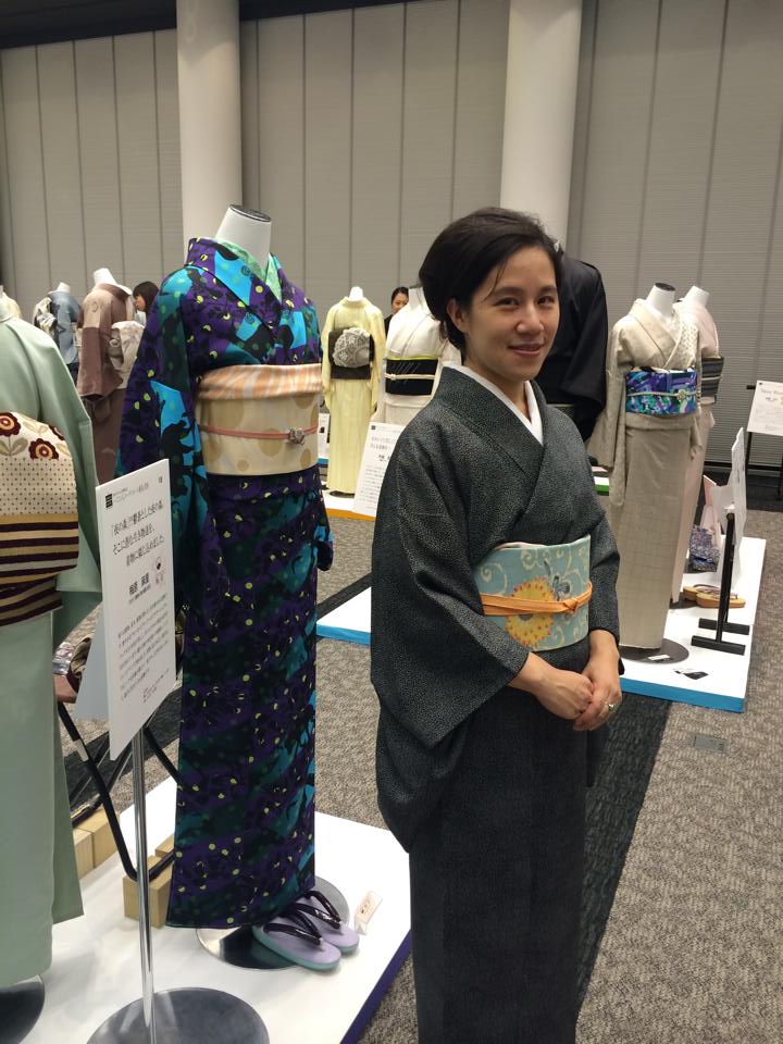 ↑会場の一部をバックに、マネキンに紛れ込んで写真を撮ってみましたが、こんな風に、各きもの店、スタイリスト、染織作家、着付け師などなどの方々が、それぞれのコーディネイトをマネキンに着付けて披露なさっています。