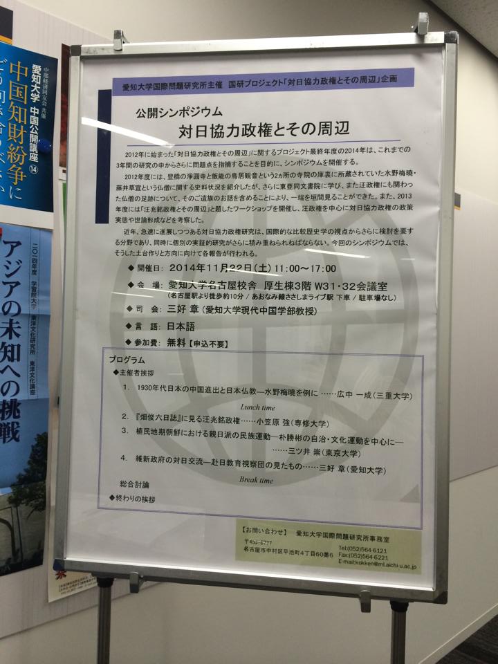 この日出席していたのは、「対日協力政権とその周辺」というシンポジウムです。愛知大学名古屋キャンパスで開かれていました↓