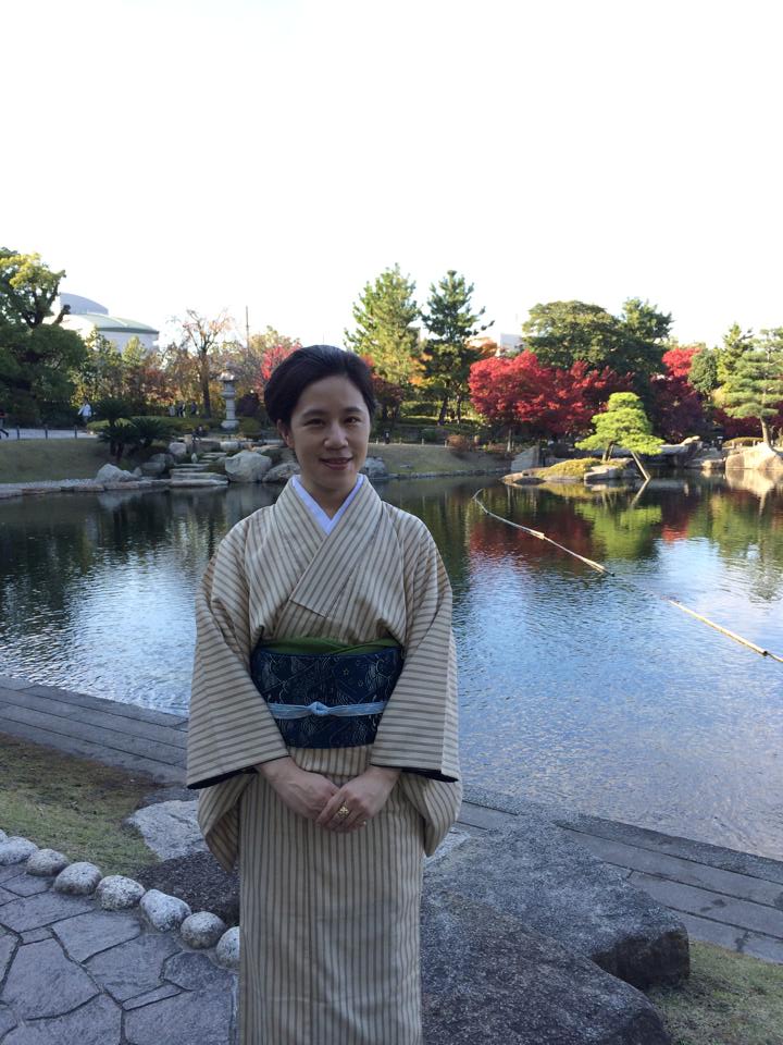 背景に写っているのは、名古屋市北部にある「徳川園」の庭園です。御三家筆頭の尾張徳川家の別邸を、公園として開放している場所です。