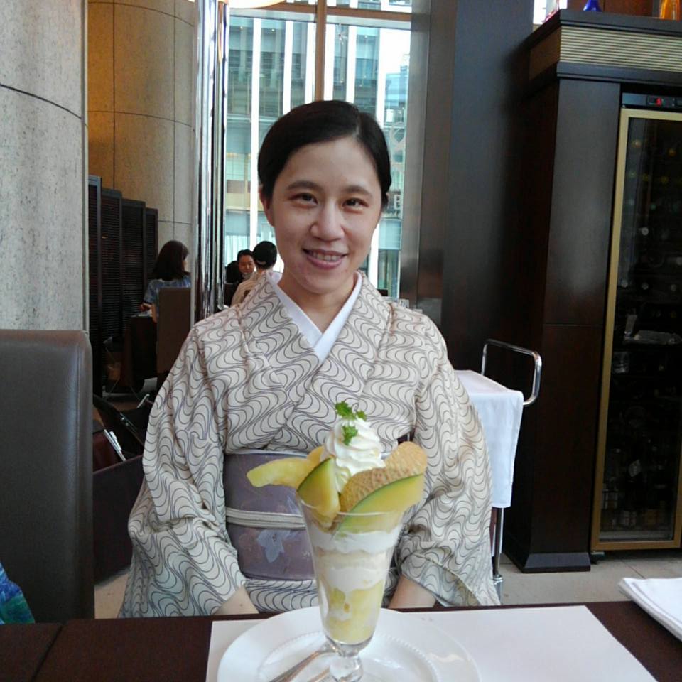 8月に入ってからは、毎年恒例、きもの友だちが浴衣や夏のきもので集まるパーティーが開かれました。場所は、東京タワーのお膝元、「The Place of Tokyo」。私は淡いグリーンに白と焦げ茶の格子柄の紗紬で出かけました↓