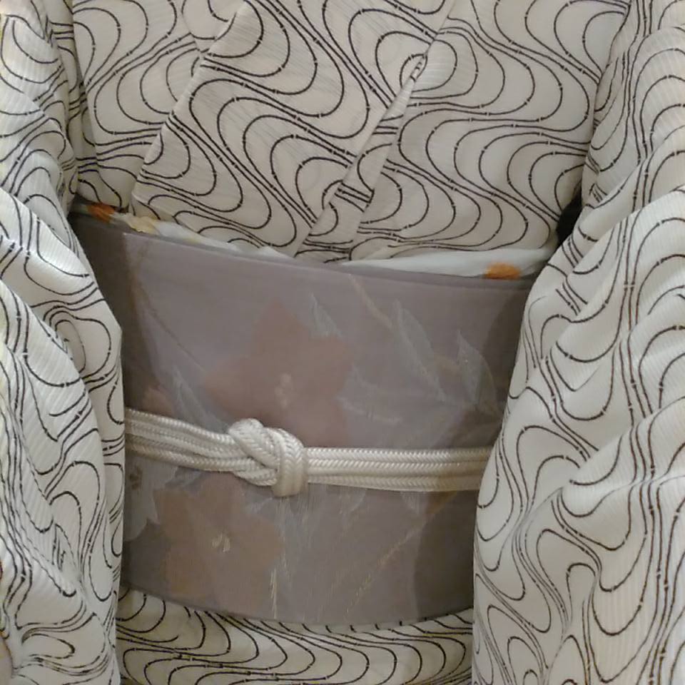昼顔柄の絽の小紋に、帯締めと帯揚げ、きらきらと帯の周りで光を放っております!