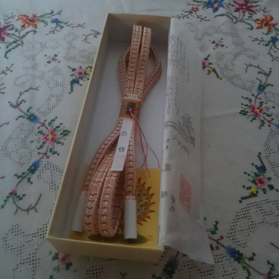 そしてそしてこの日、お二人から素敵なお祝いの品を頂いたのです!道明先生からは、道明の「糸竹組」の愛らしい帯締め↓