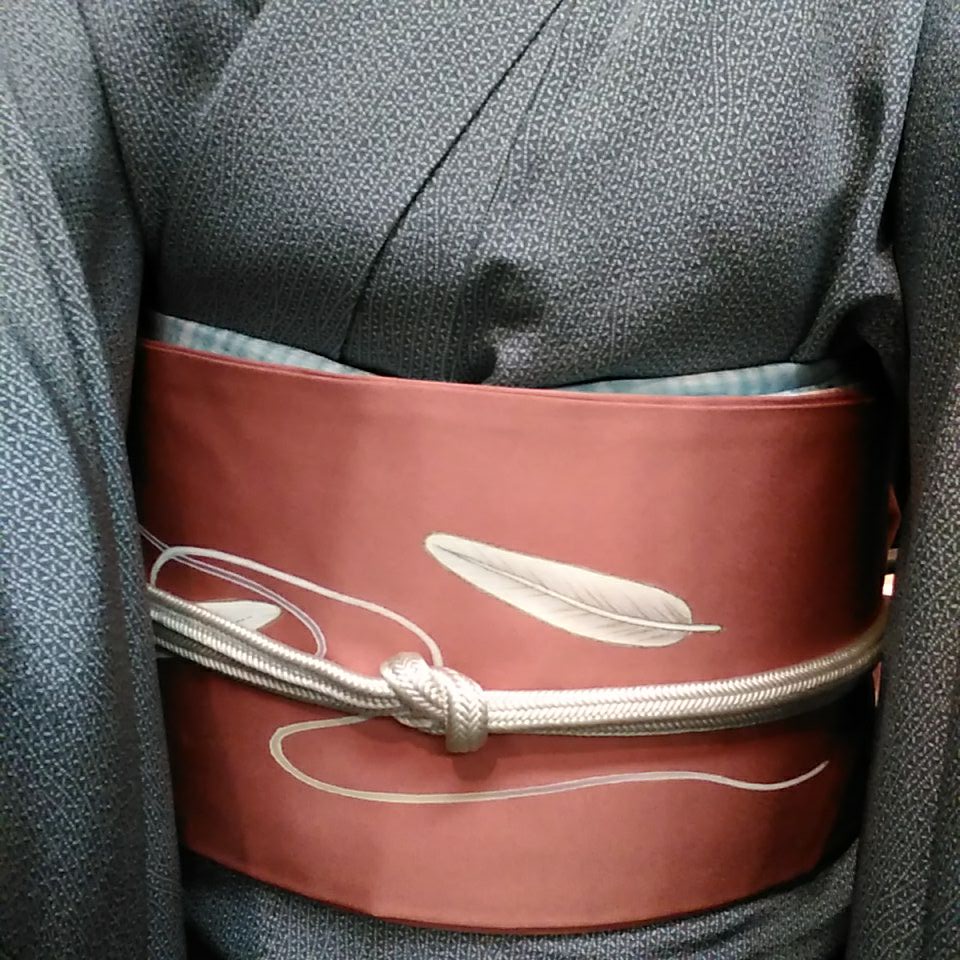 きものは、江戸小紋。帯は、羽と糸を染めた名古屋帯。ともに、模様の詳しい説明については長く書きたいことがあるので、後日のブログをお待ち下さいませ。