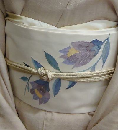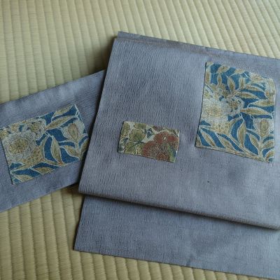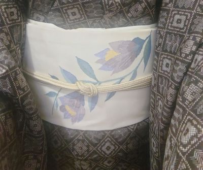 ブルー系のきものにもきっと合うだろうし、春先には玉子色にも合わせてみたい。名古屋帯とは言え上質な地風のため、かなりきちんと感もあり、とてもとても出番の多い帯になる予感がする。