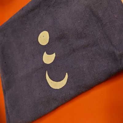 まこと織物のよろけ織り地に、和更紗の端切れを切り嵌めたもの。